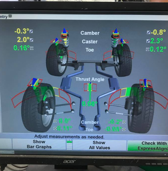 - Performed 4 wheel alignment. Make adjustments to steering components within factory specifications. Road test vehicle to confirm alignment is correct.